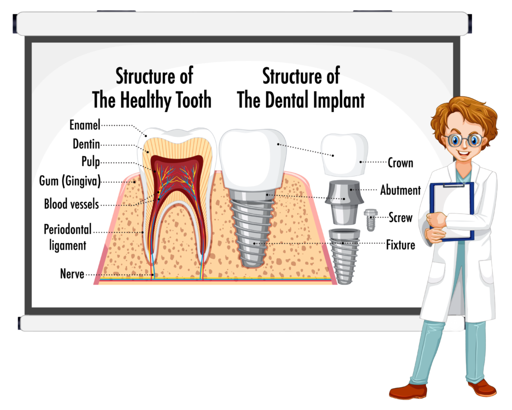 Dental implants restore chewing and speaking abilities.